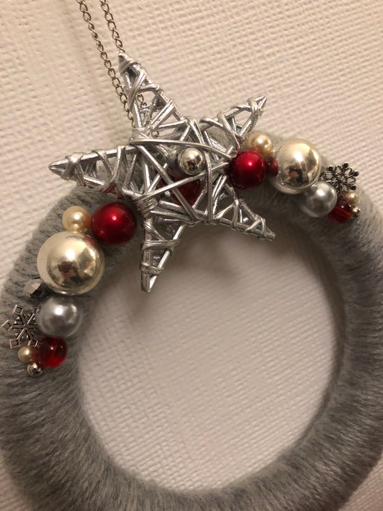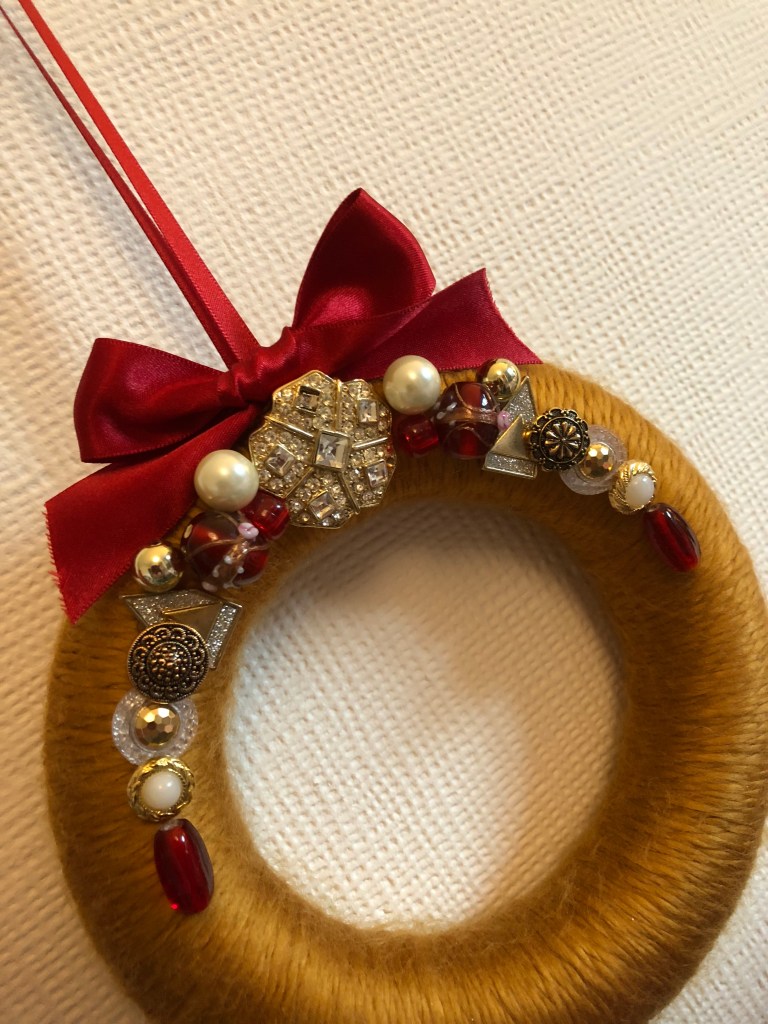 I love wreaths! Hanging on a wall, mirror or door, they look great, especially when they are adorned with something personal.